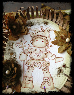 *Stempels: Magnolia "Jester Tilda" en JustRite background Harlequin Script(hier zie je niets meer van